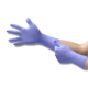 Guante de nitrilo desechable, sin polvo, no estéril, fabricado en caucho de nitrilo butadieno, de color azul violeta, con dedos texturizados y espesor aproximado de 0,10 mm en la palma, diseñado para protección personal y exámenes.