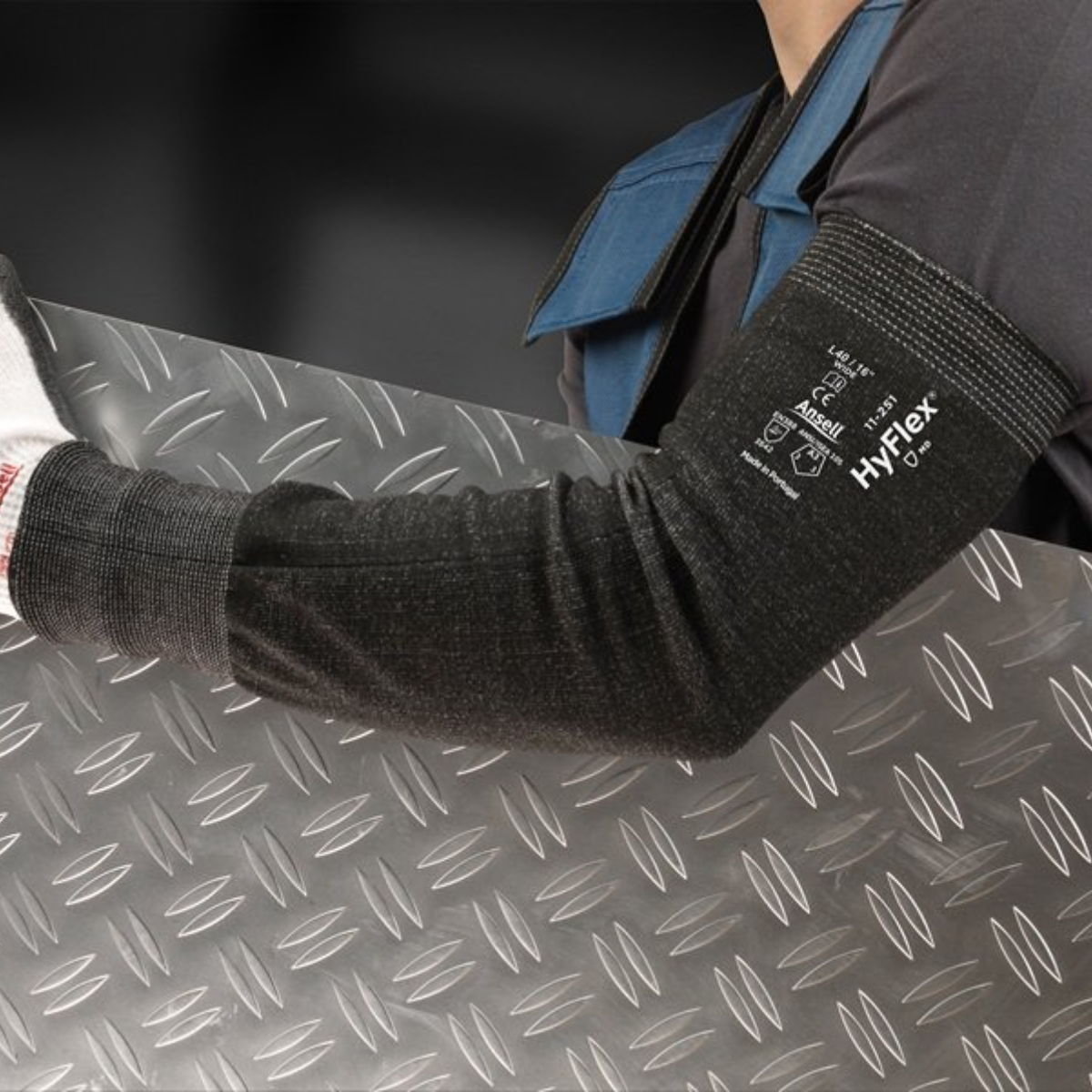 Manga protectora para brazos que brinda frescura y transpirabilidad, con protección contra cortes. Evita la transferencia de contaminantes al metal antes del pintado. Ideal para automotriz, maquinaria y fabricación de metal, en la manipulación de piezas y componentes con bordes afilados.